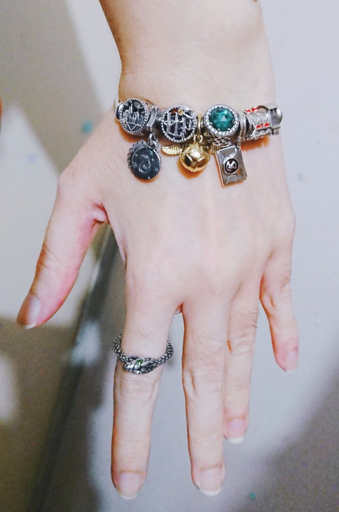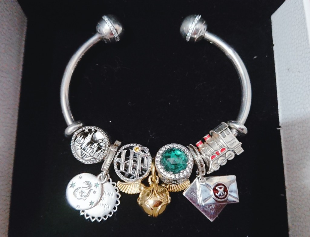沒有買分類帽和嘿美,一來是覺得分類帽那個形狀搭在一串的話總覺得怪怪的像上次我也沒有買小人物的charms,除了選角外,覺得很難串得好看也是其中一個理由