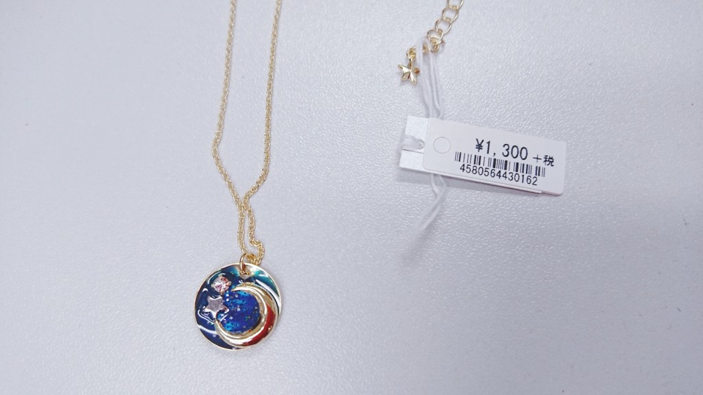 然後是這個月亮頸鏈,我本來有個其他牌子類似的款,但還是想買這個,因為太美,看,1300羊還7折耶,算起來才港幣$60左右,以朱義盛來說質素真的很不錯!(喂)