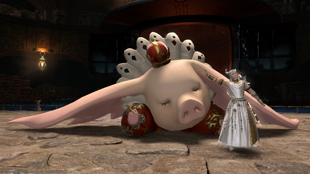總而言之,得知術式後,ラハ君就把術式定在アリゼー的飛天豬使魔裡