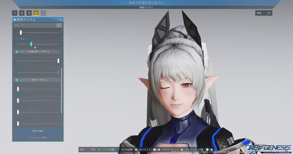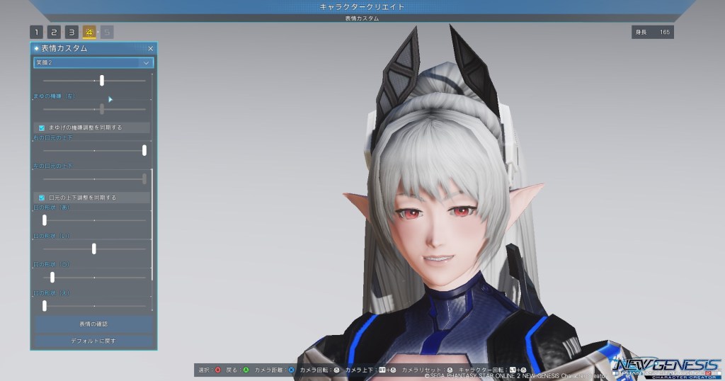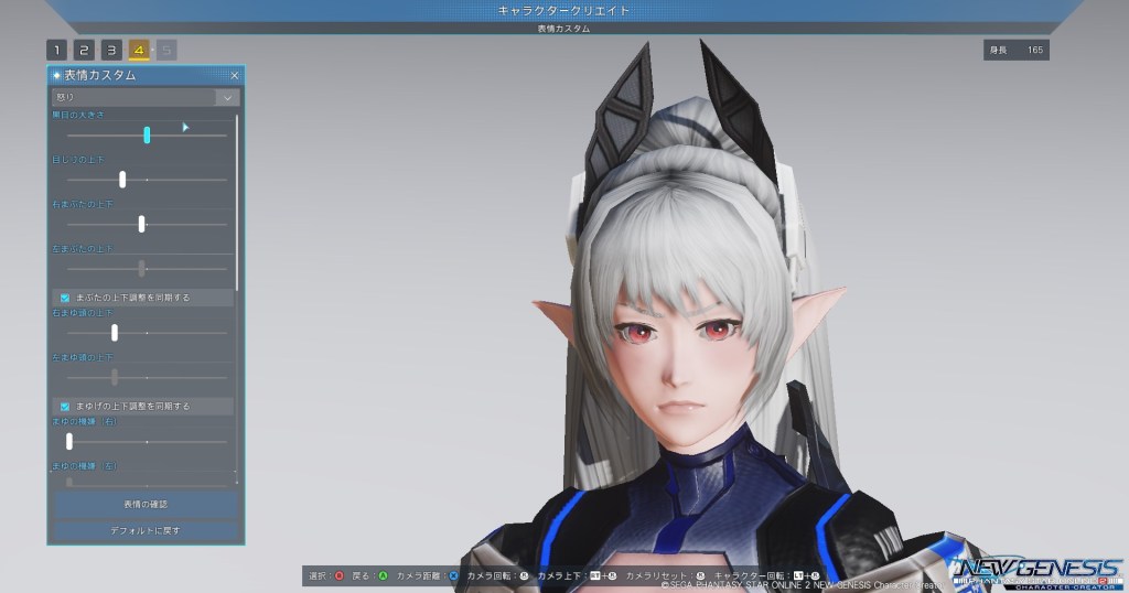 「画像はPHANTASY STAR ONLINE 2 NEW GENESIS Character Creatorにおいて撮影された実機画像です。」