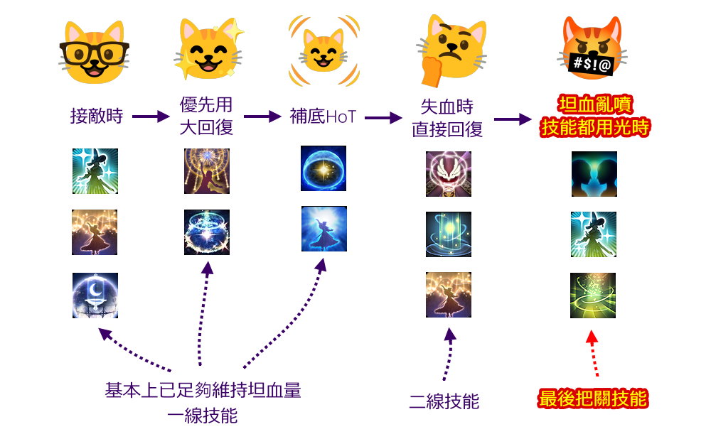 所以到打王要奶AOE傷害時,第1輪雜魚有用過的技能理論上都能回來就是啦(別忘了還有天宮圖!)