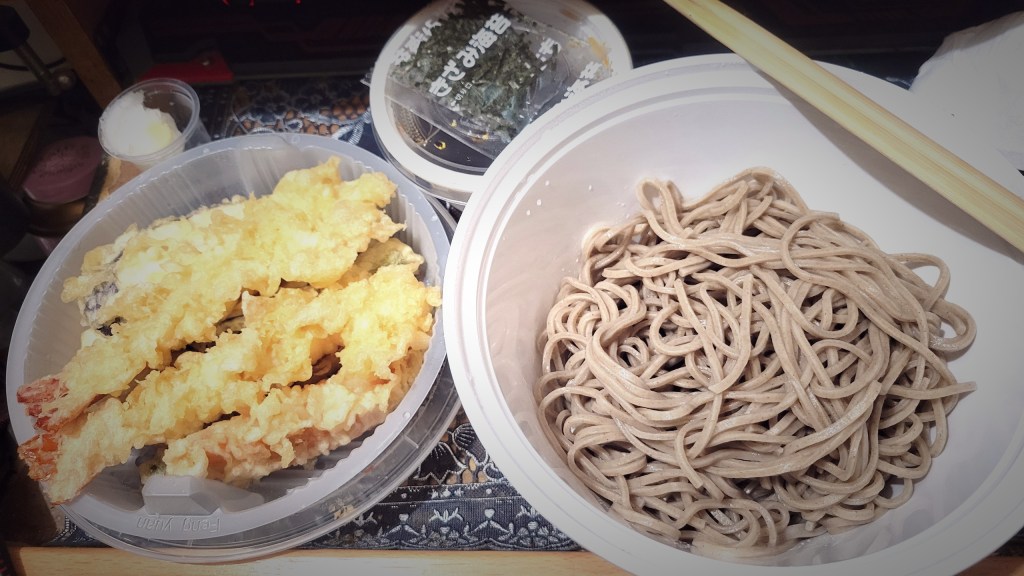 結果1月1日的晚上我去了買冷蕎麥麵,原本是想堂食的,但那家店在區內很受歡迎所以很多人排隊…