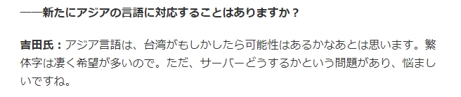 媒體有問吉田有沒有打算對應新的亞洲語言?