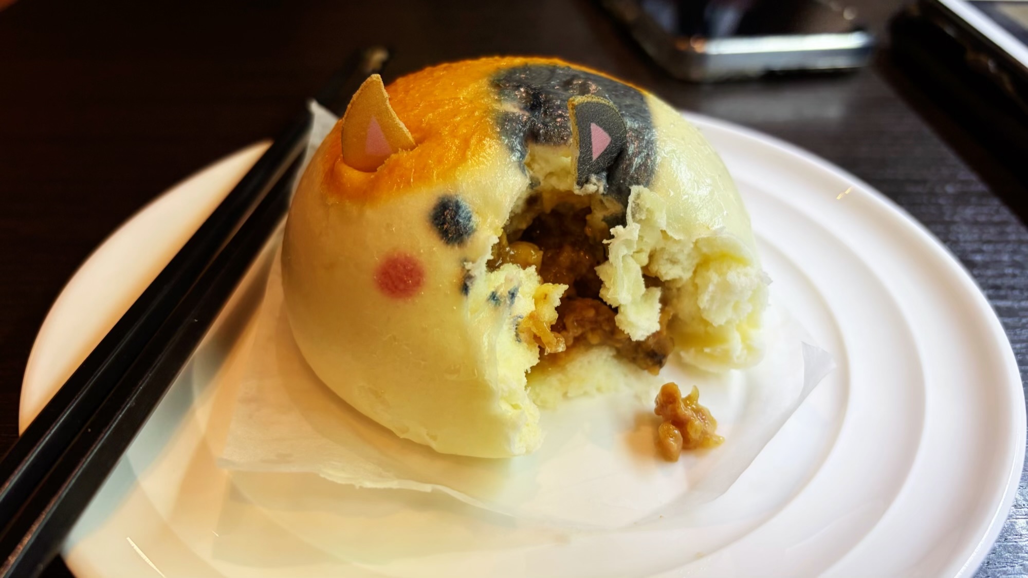 噗友先是點了一隻肥貓肉包問我要不要試試看可惜沒有鯰魚包不然我一定會點結果把包子掰開就這個畫面…(抖)