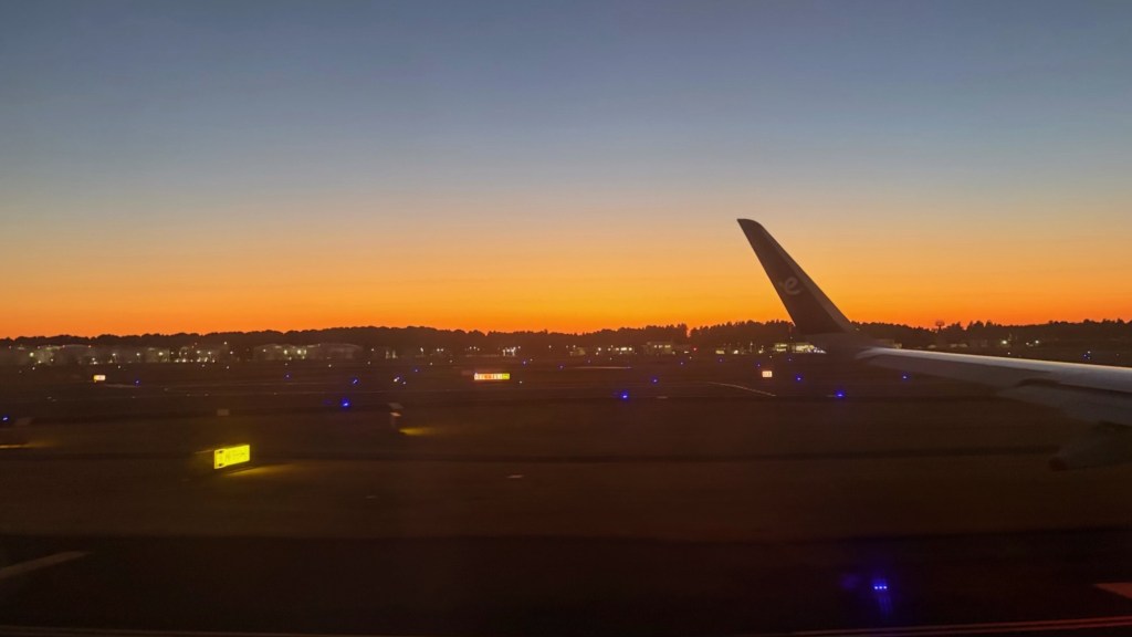 上飛機已是黃昏了,這個天空顏色很美…!